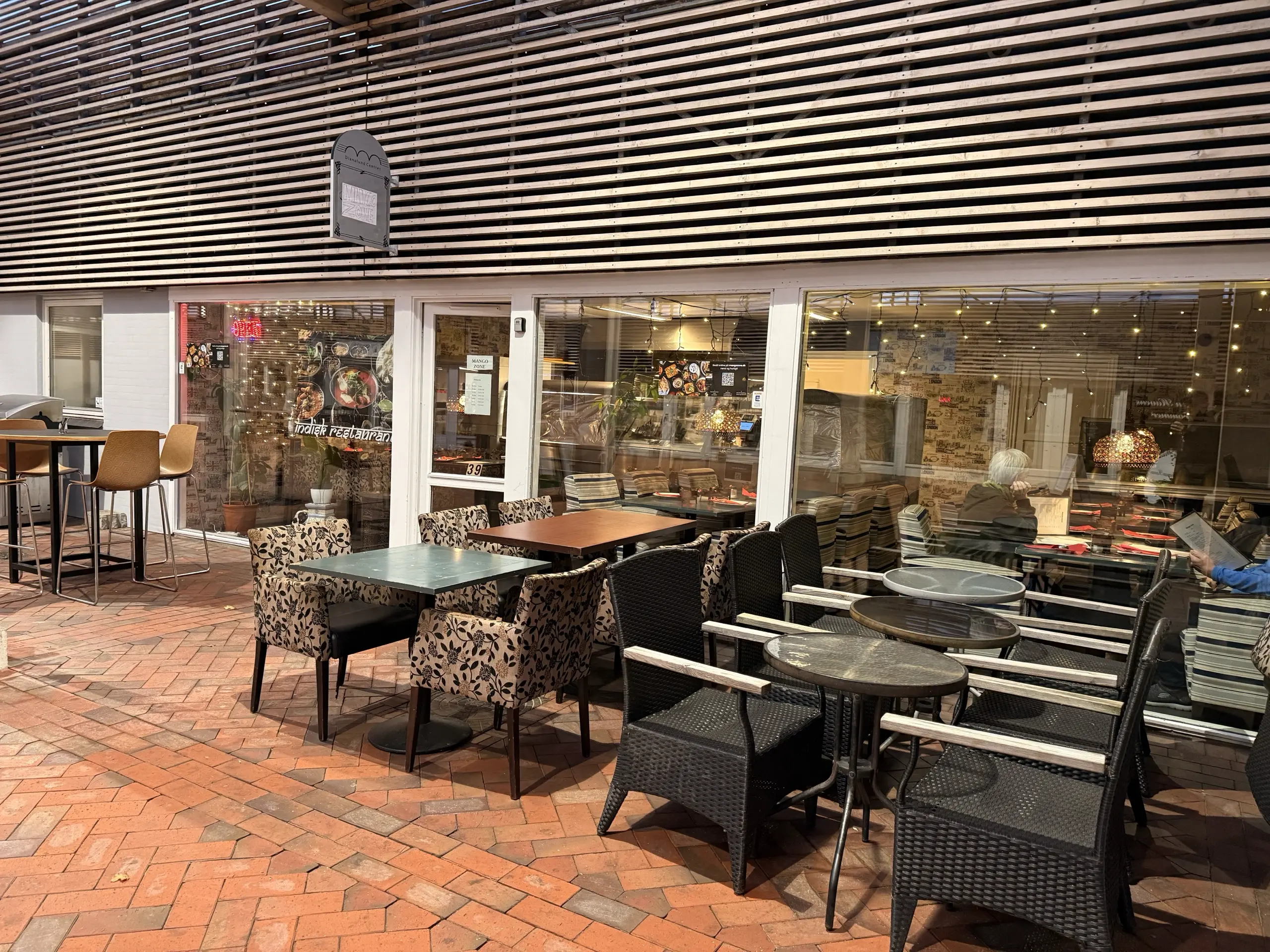 Når man træder ind i restauranten bliver man mødt en hyggelig atmosfære, mild duft af karry og store smil der byder velkommen. Restauranten er placeret i hjørnet ved Fair fitness og Bodega Keglen.