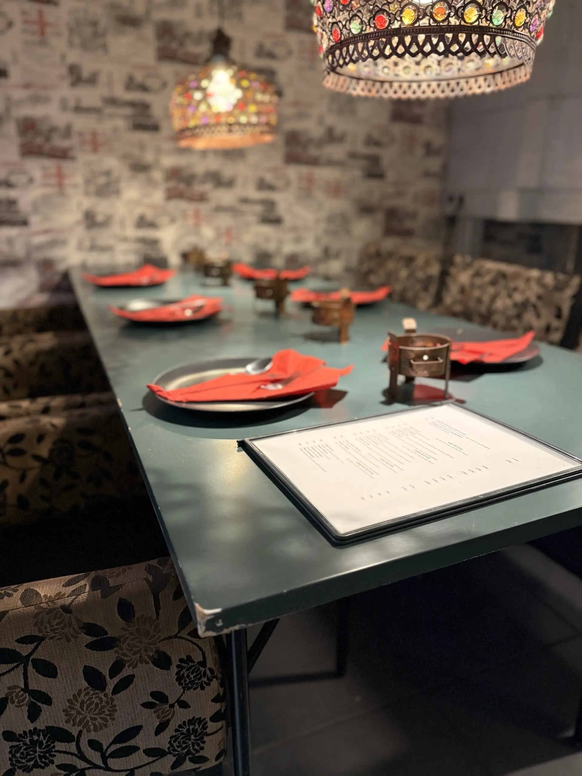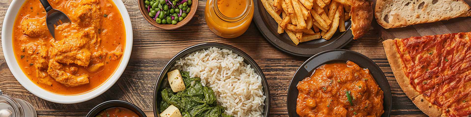 Der tilbydes et bredt udvalg indenfor det indiske køkken heriblandt vegetariske karryretter (som palak paneer, channa masala), butterchicken, klassiske kødretter og grillspecialiteter.