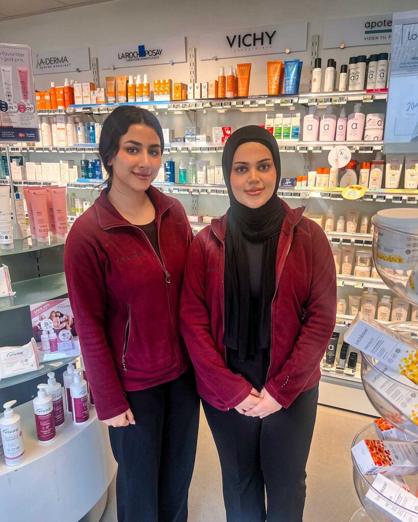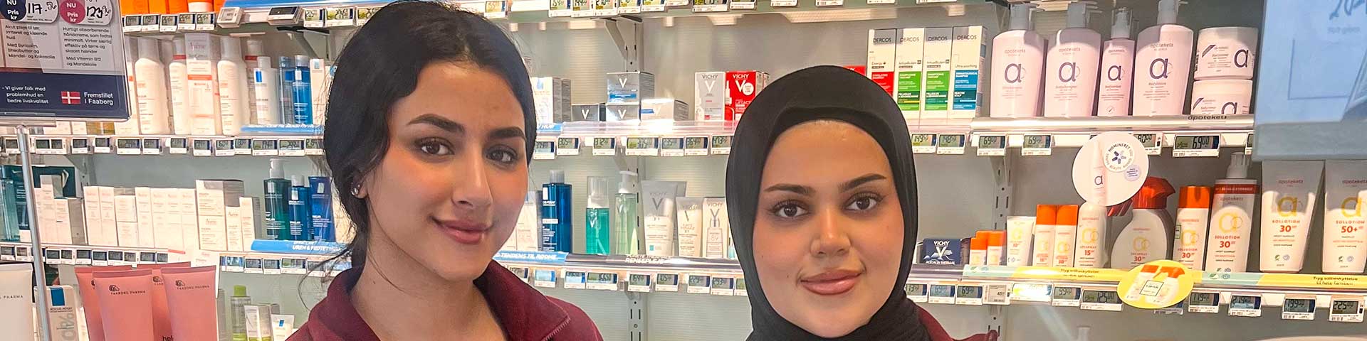 På Dianalund Apotek vil du frem til juli, kunne møde Jasmin og Daniya der begge er farmaceutstuderende på Københavns Universitet.